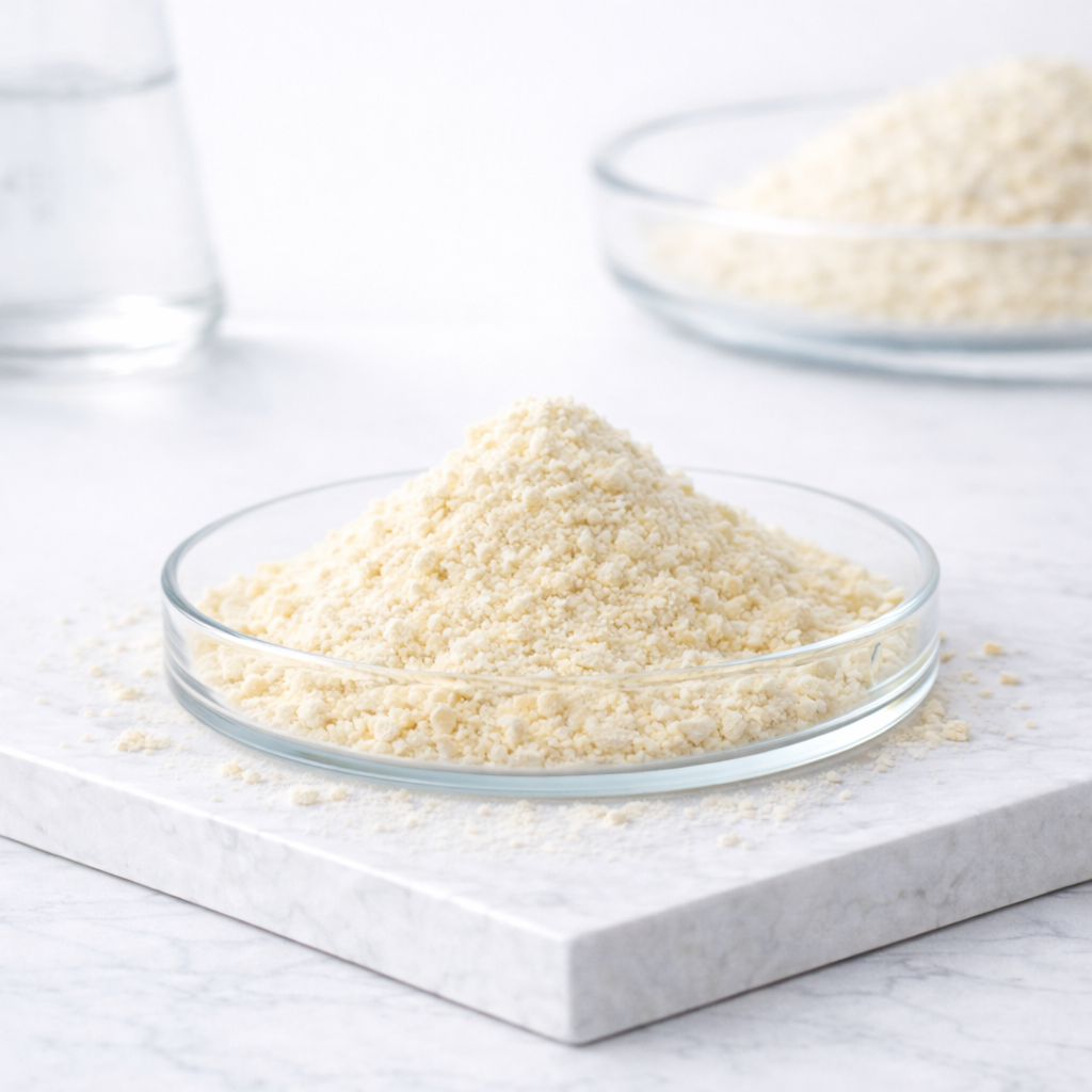 - Form: Feines weißes bis leicht gelbliches Pulver
